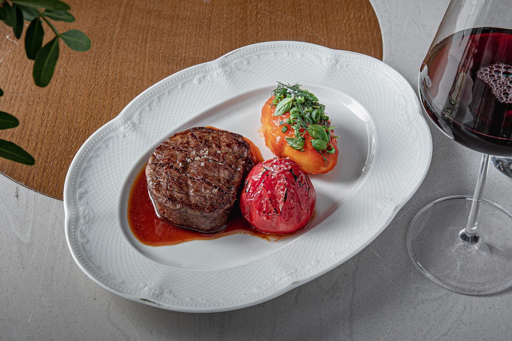 Octopus with baked potatoes, tomatoes and Nocarella olives