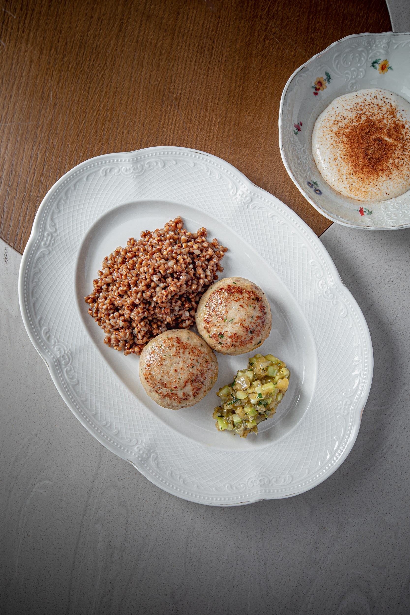 Healthy lifestyle breakfast: Shrimps, avocado, poached, cucumber