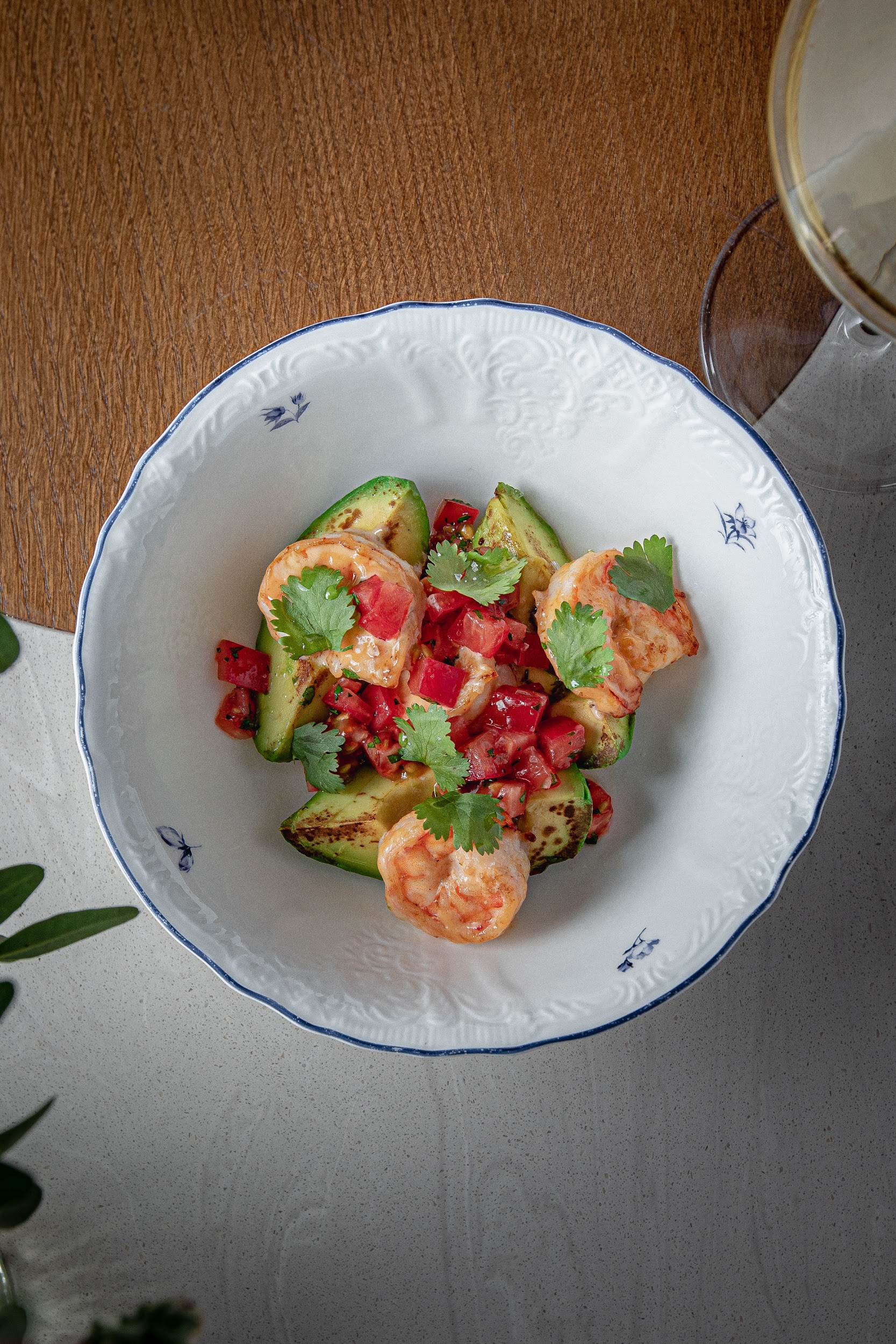 Завтрак ЗОЖ: креветки, авокадо, пашот, огурец